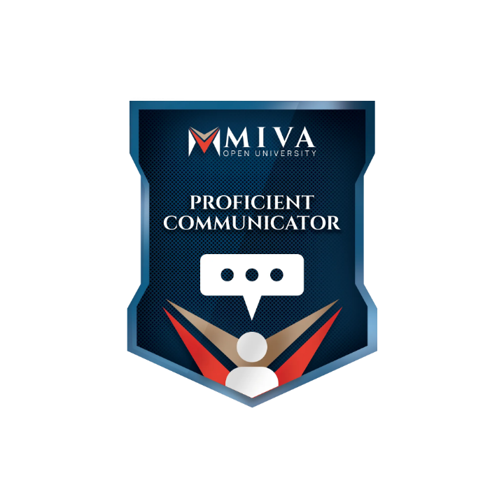 The Proficient Communicator Badge recognizes the receiver's achievements and skills in the Communication in English course at Miva Open University, allowing them to showcase the badge in their CV and professional profiles.
