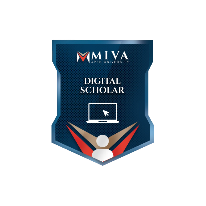The Digital Scholar Badge recognizes the receiver's achievements and skills in the Introduction to Computing course at Miva Open University, allowing them to showcase the badge in their CV and professional profiles.